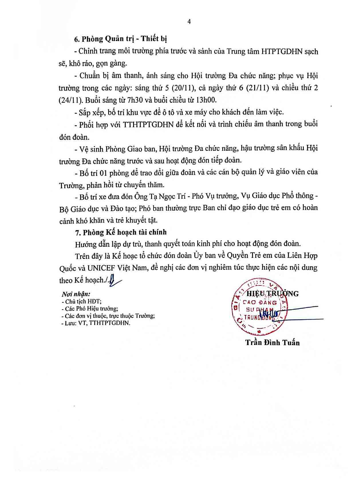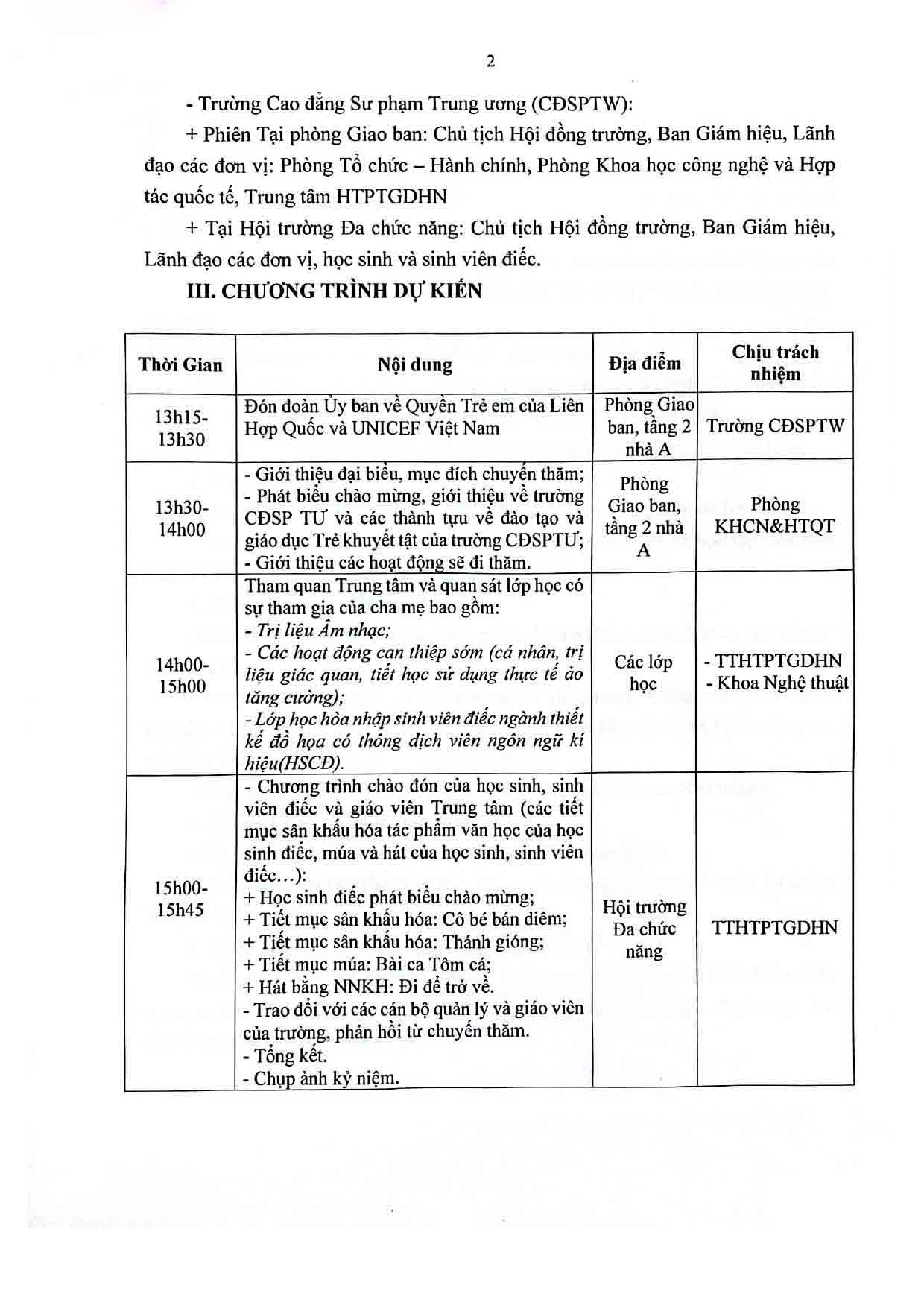 Kế hoạch Đón đoàn Ủy ban về Quyền Trẻ em của Liên Hợp Quốc và UNICEF Việt Nam