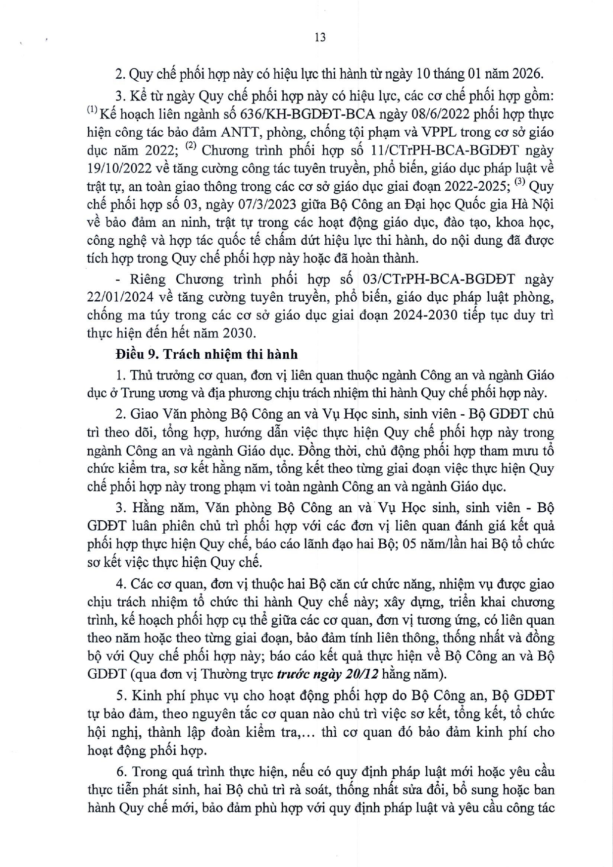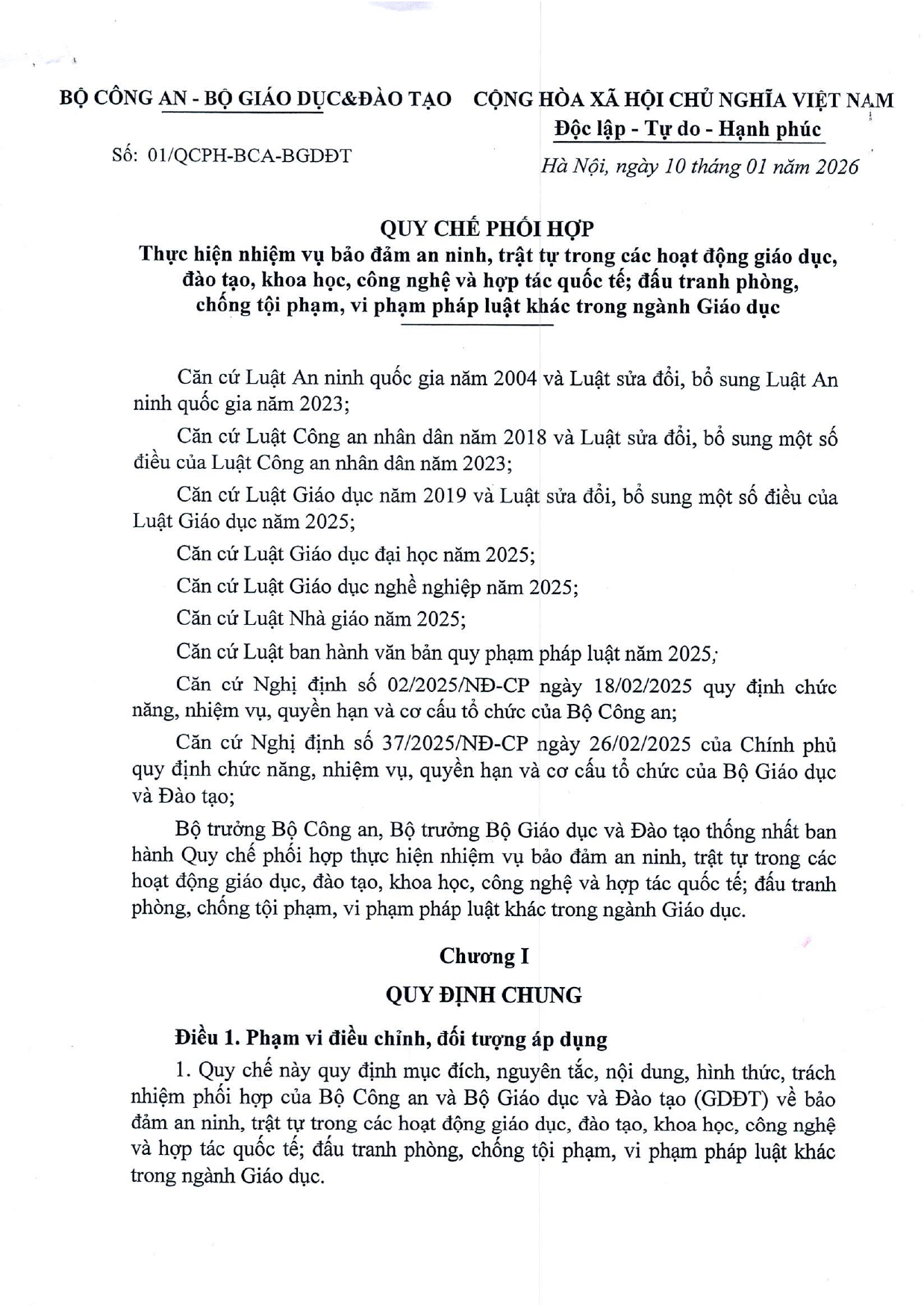 Số/ký hiệu: 01/QCPH-BCA-BGDĐT