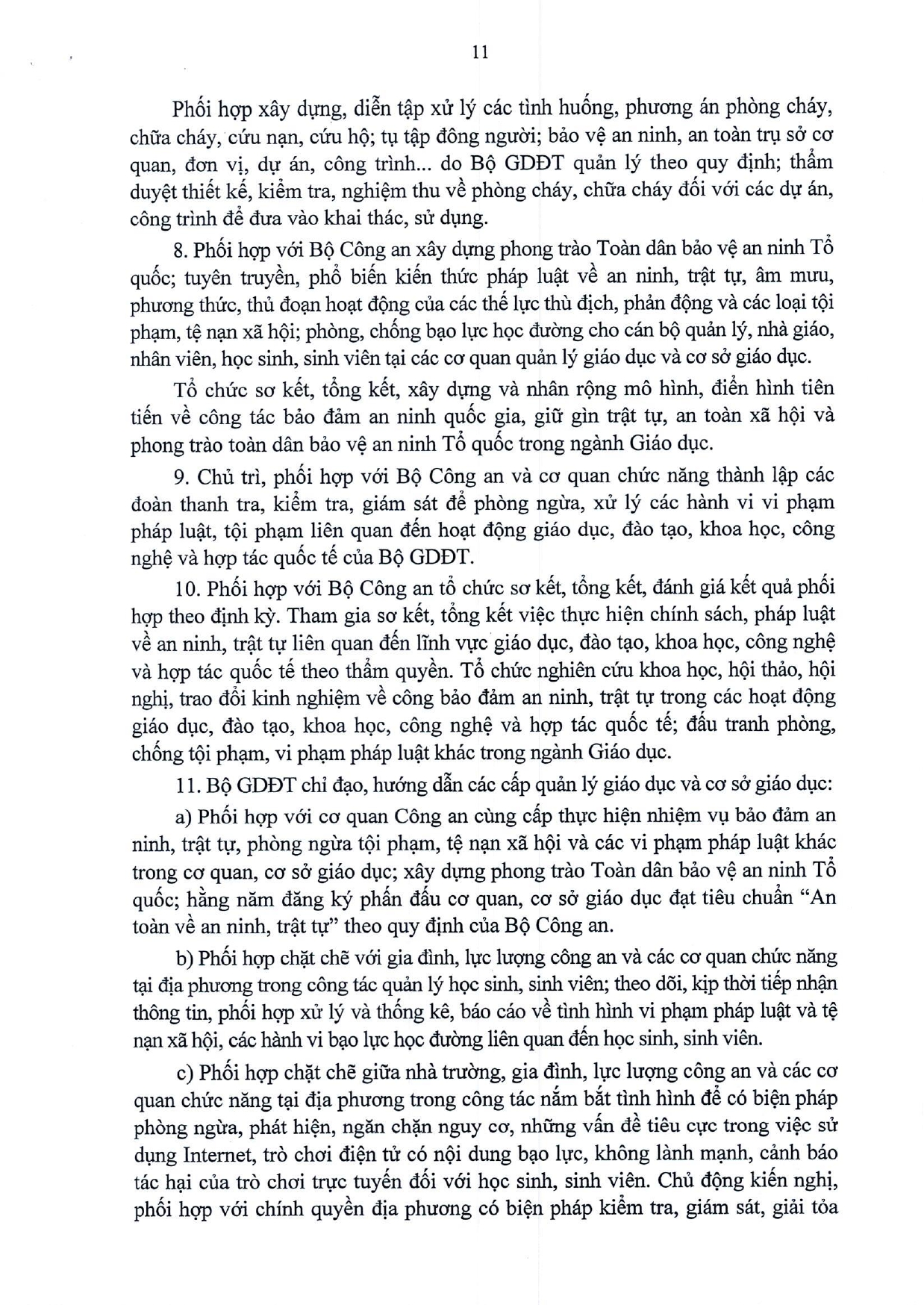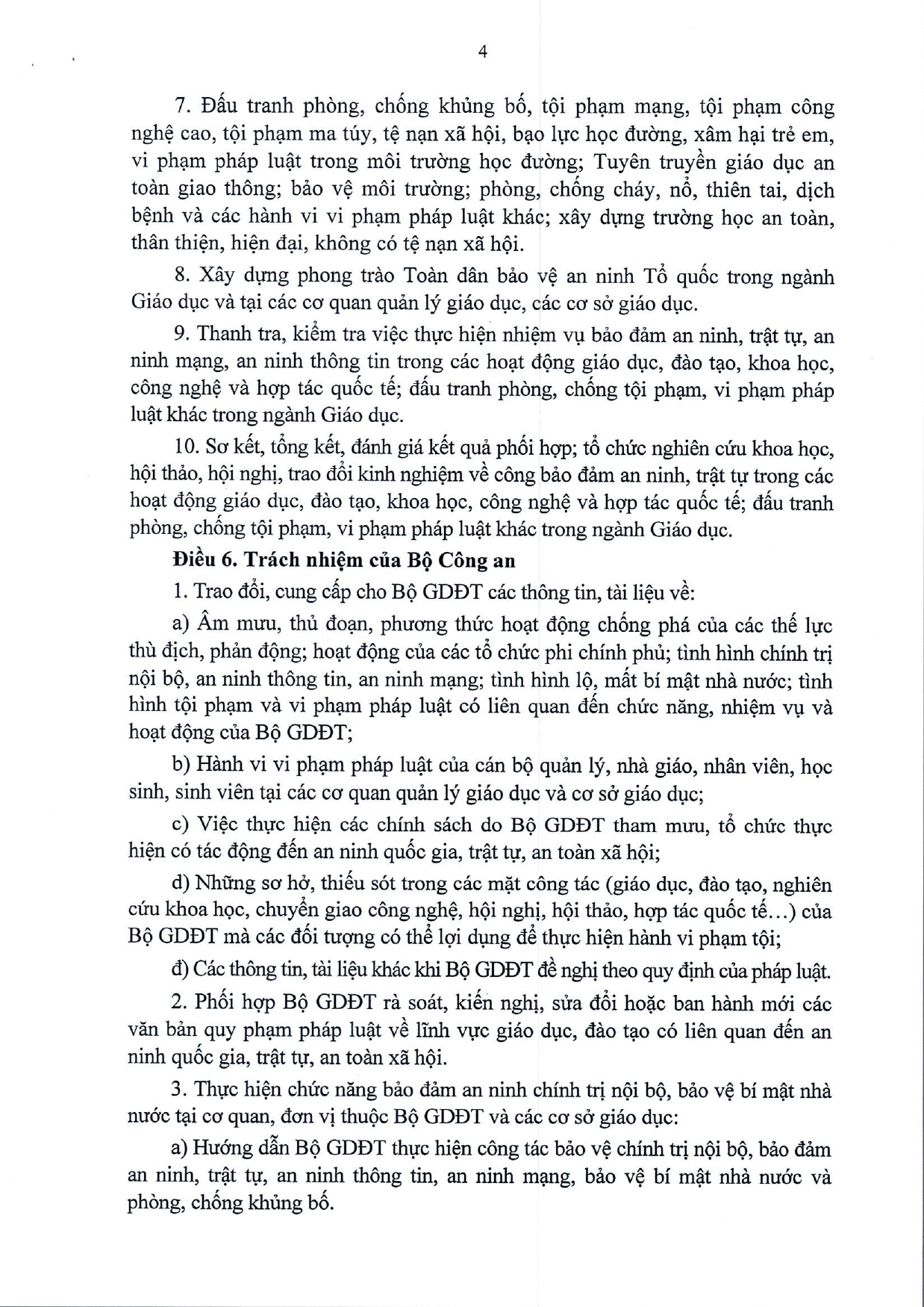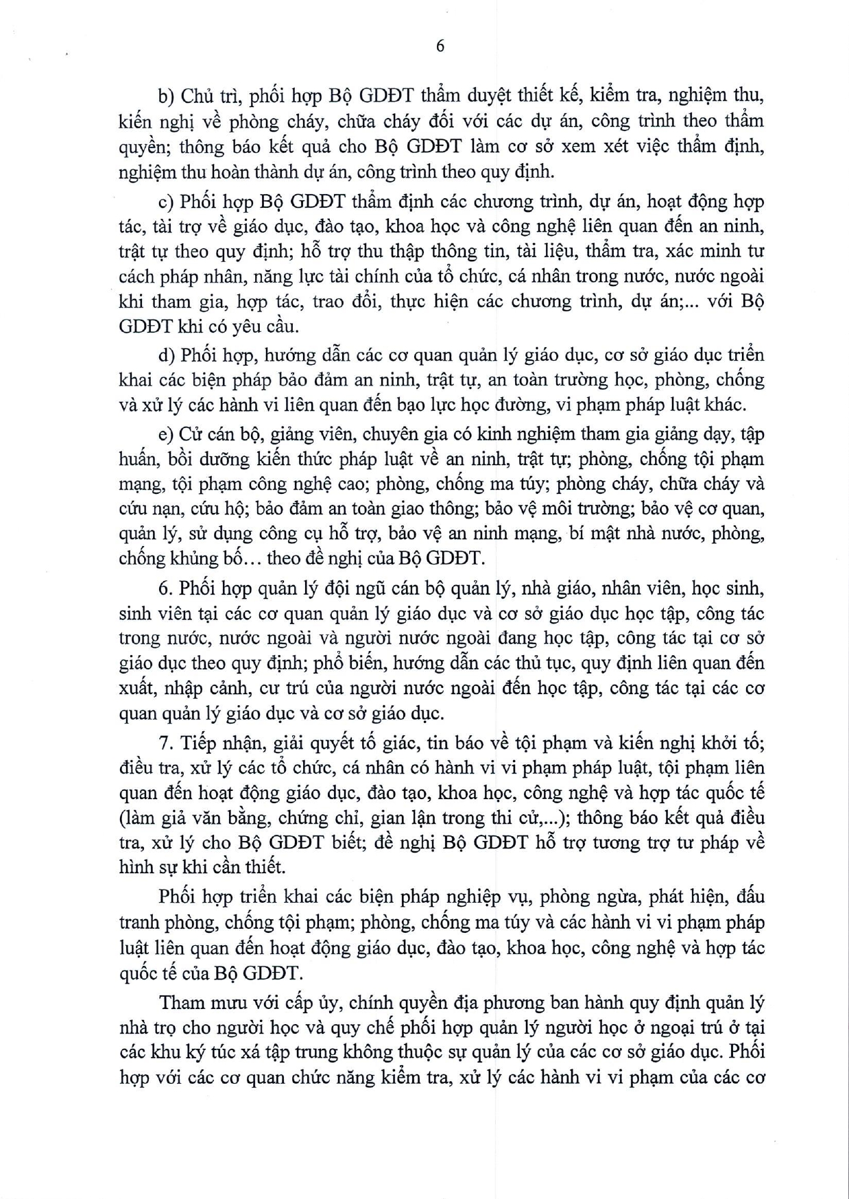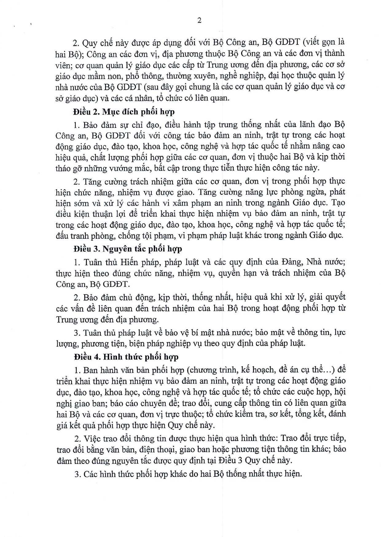 Quy chế phối hợp Thực hiện nhiệm vụ bảo đảm an ninh, trật tự trong các hoạt đông giáo dục, đào tạo, khoa học, công nghệ và hợp tác quốc tế; đấu tranh phòng, chống tội phạm, vi phạm pháp luật khác trong ngành Giáo dục