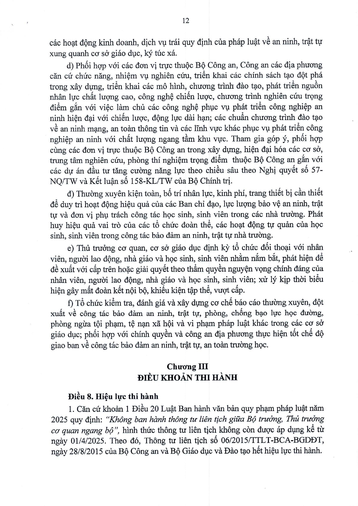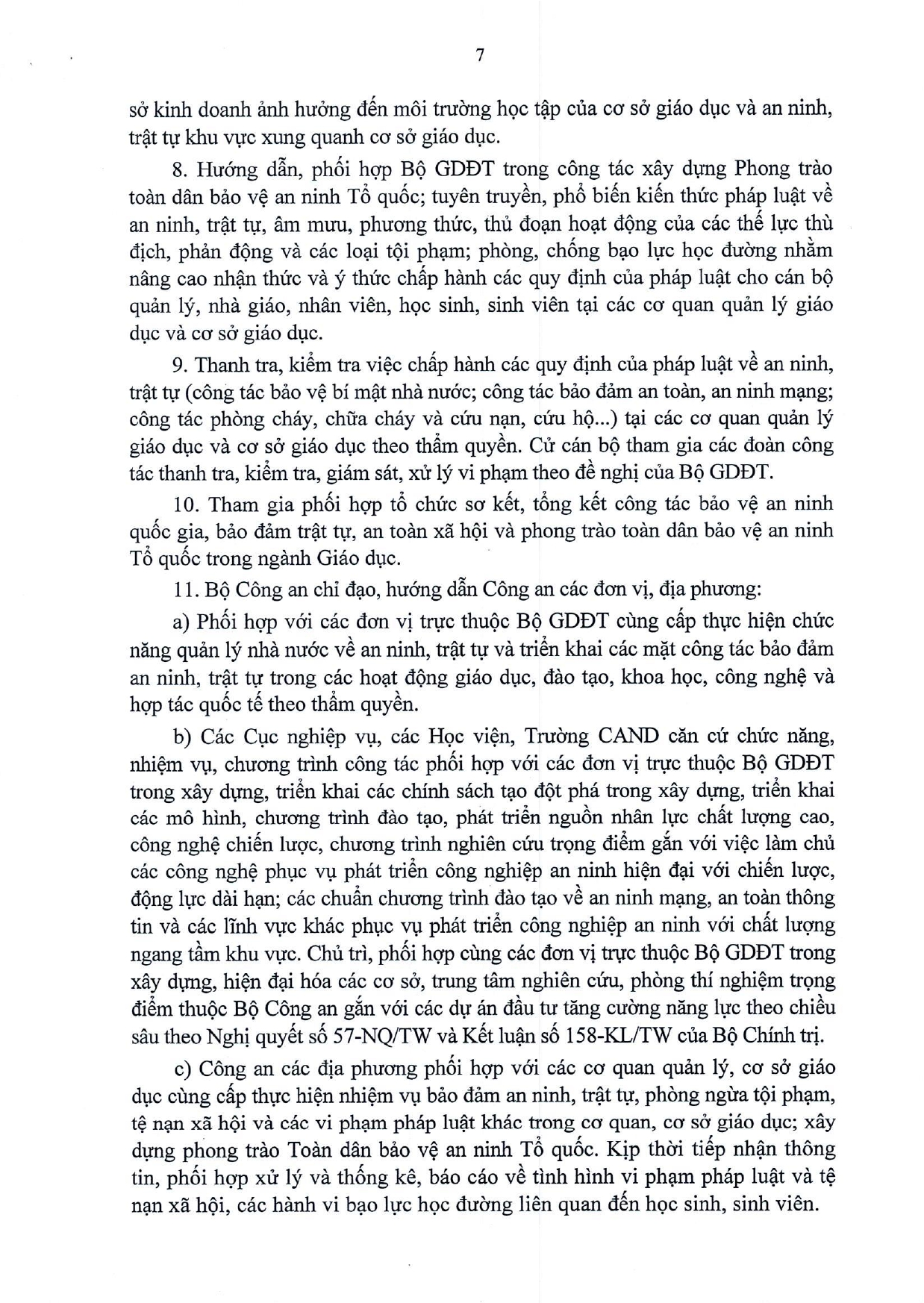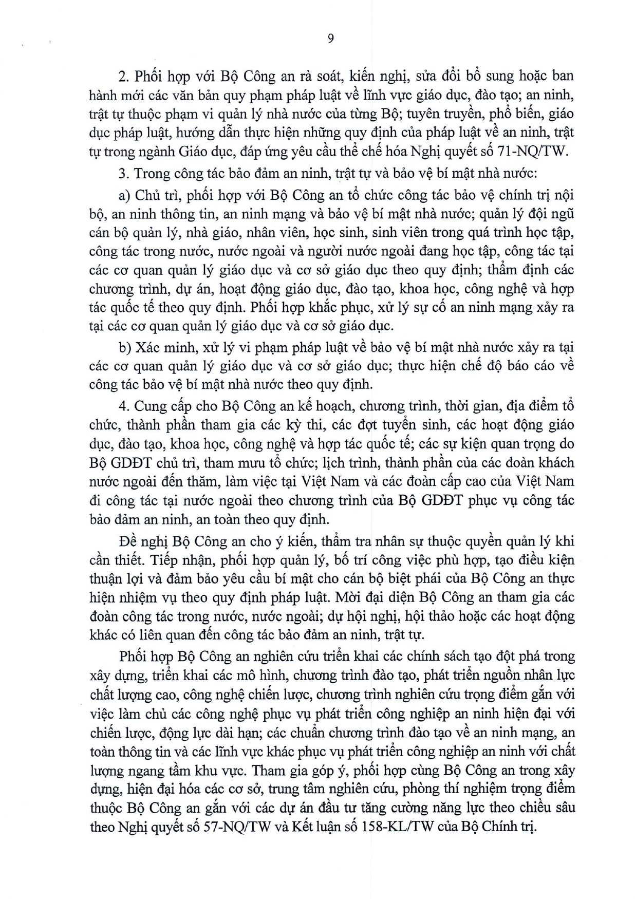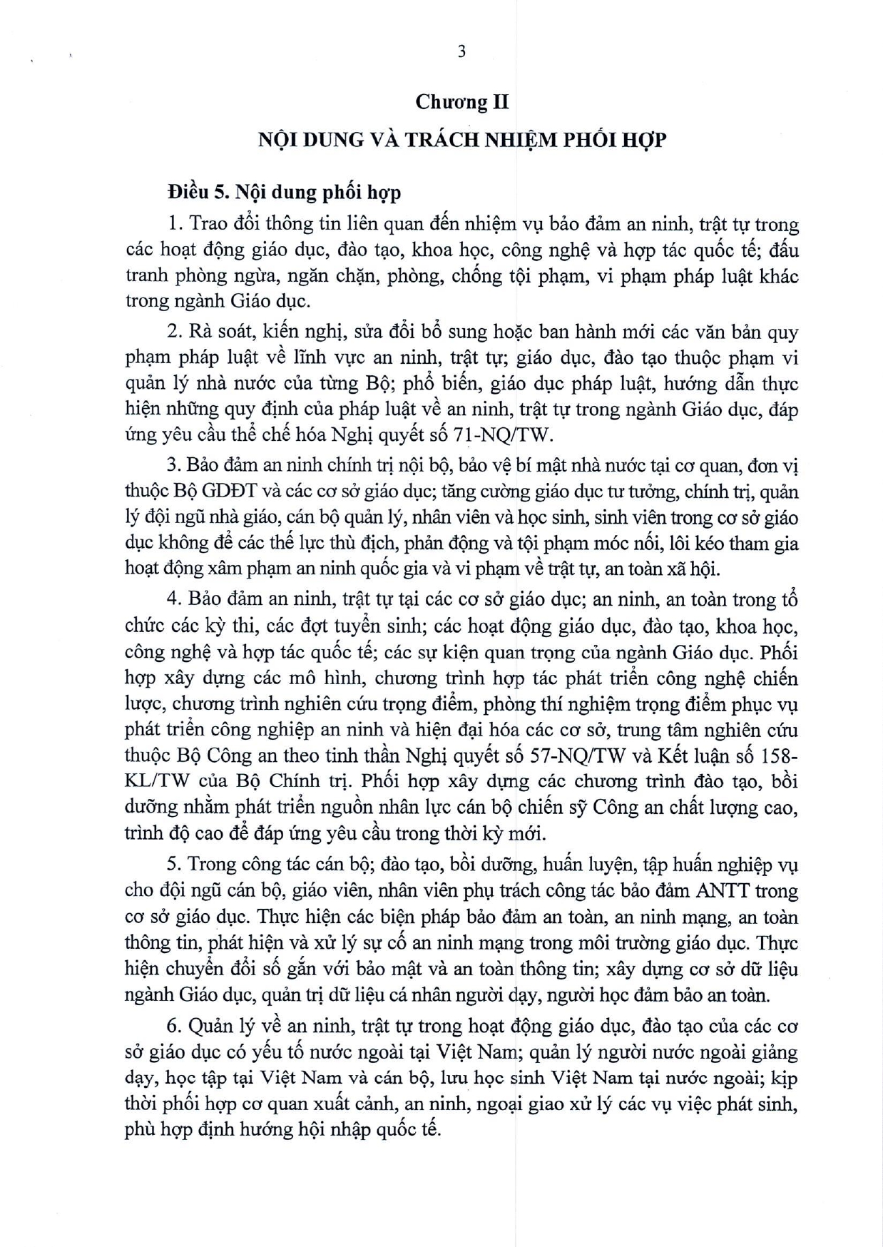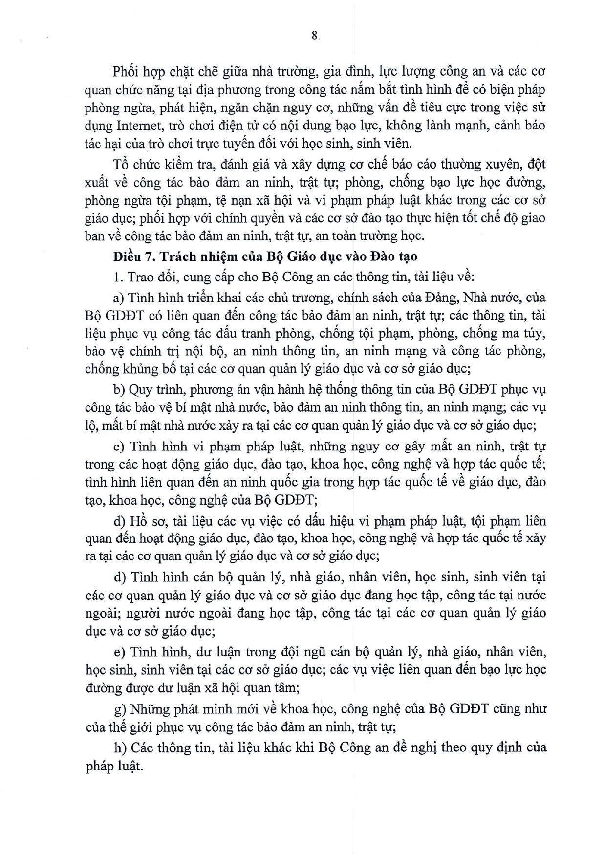 Quy chế phối hợp Thực hiện nhiệm vụ bảo đảm an ninh, trật tự trong các hoạt đông giáo dục, đào tạo, khoa học, công nghệ và hợp tác quốc tế; đấu tranh phòng, chống tội phạm, vi phạm pháp luật khác trong ngành Giáo dục