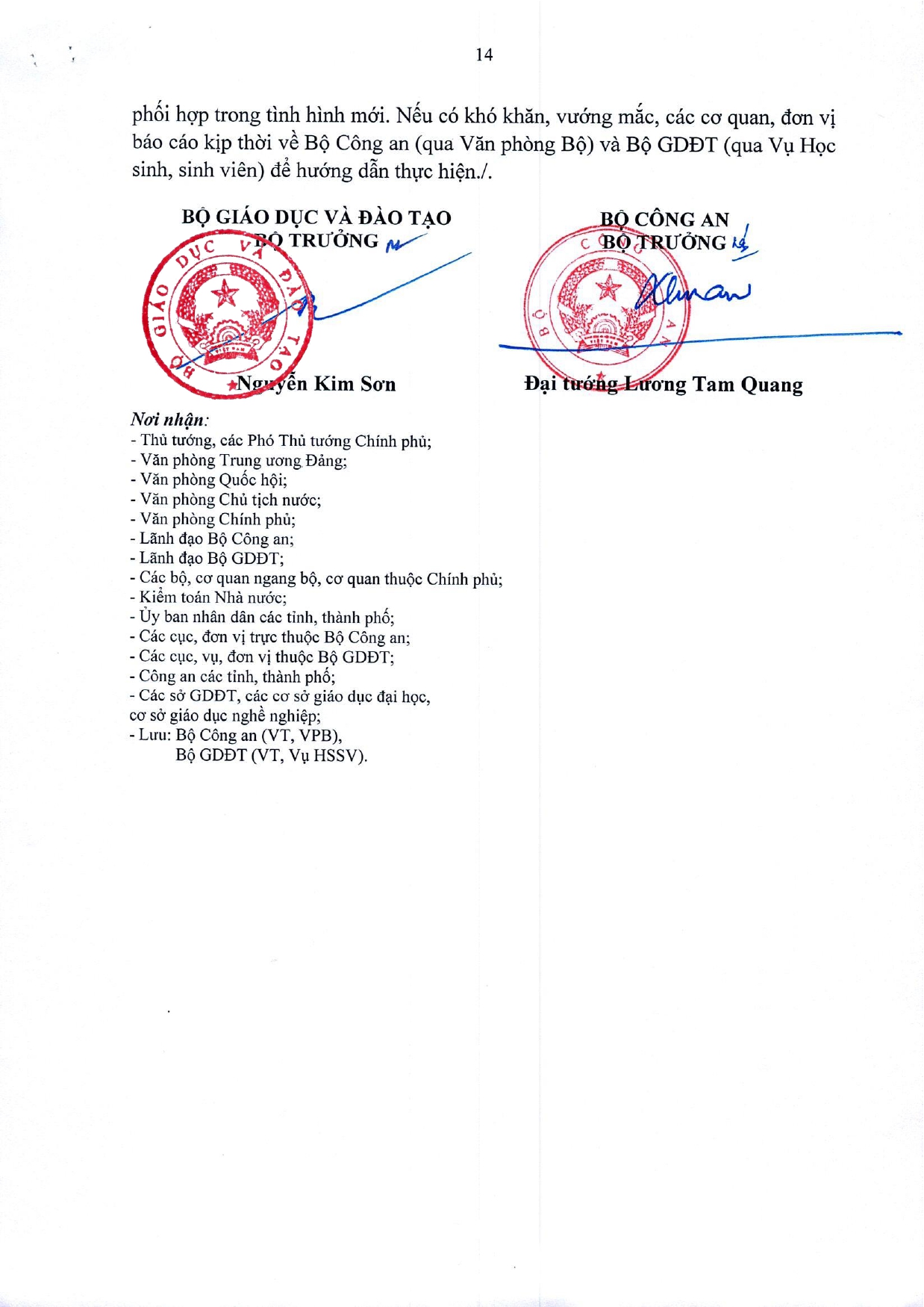 Người ký: Bộ trưởng Nguyễn Kim Sơn, Bộ trưởng Đại tướng Lương Tam Quang