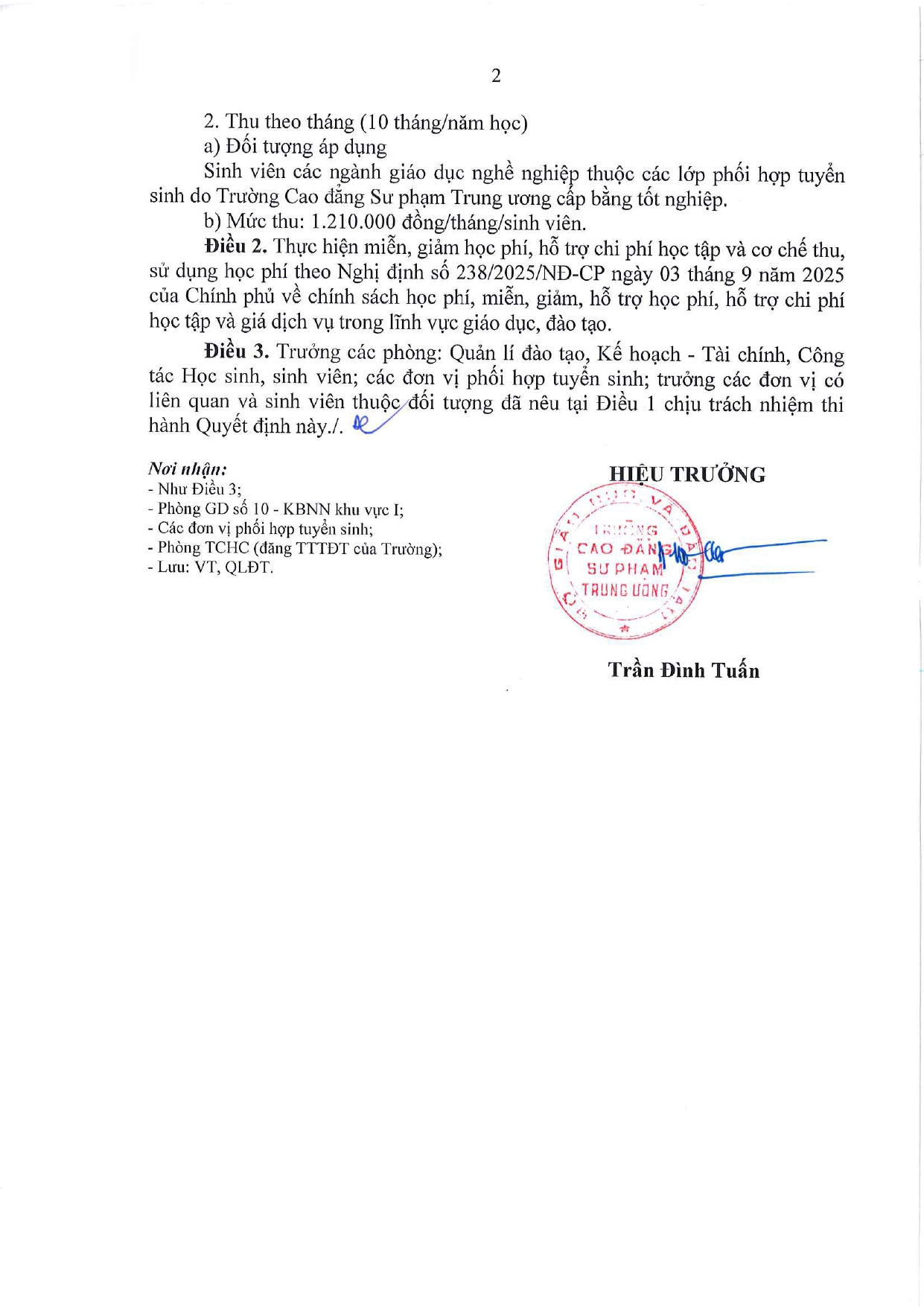 Người ký: Hiệu trưởng Trần Đình Tuấn