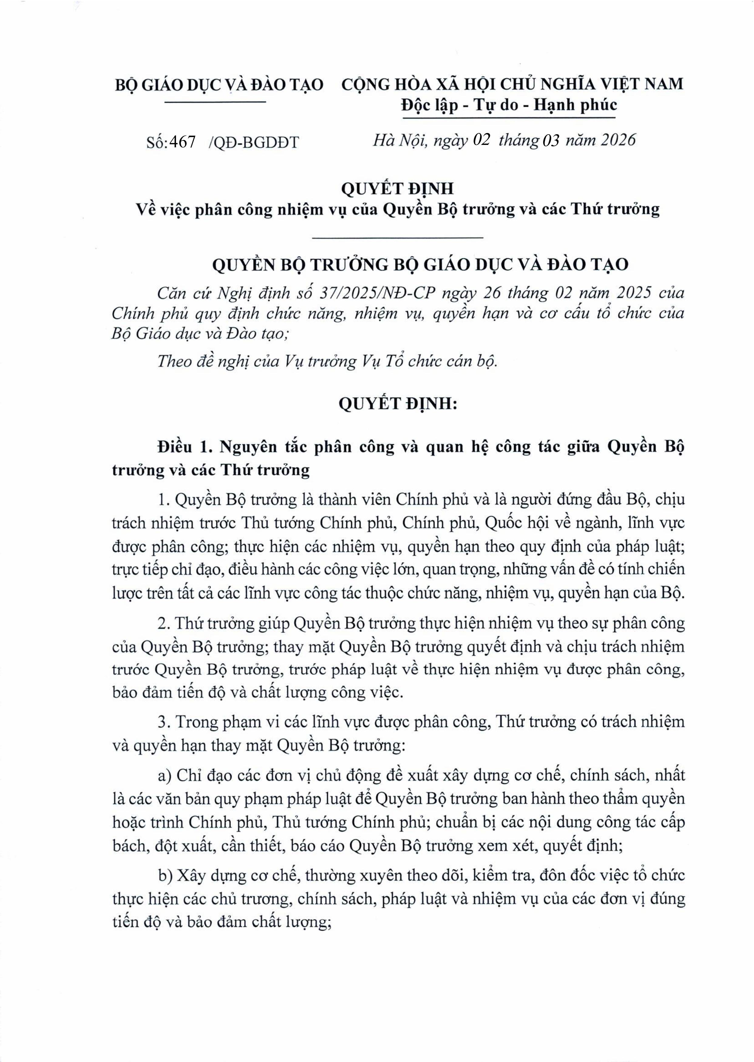 Số/ký hiệu: 467/QĐ-BGDĐT