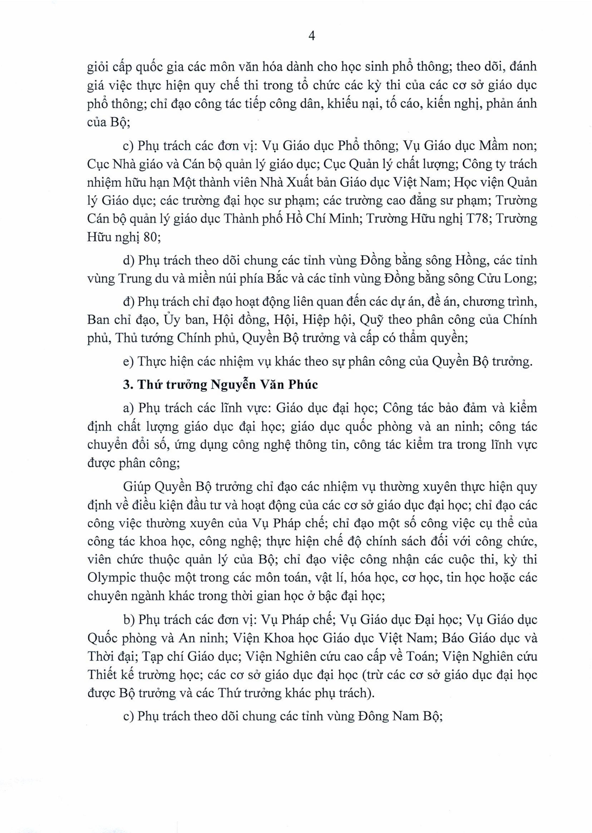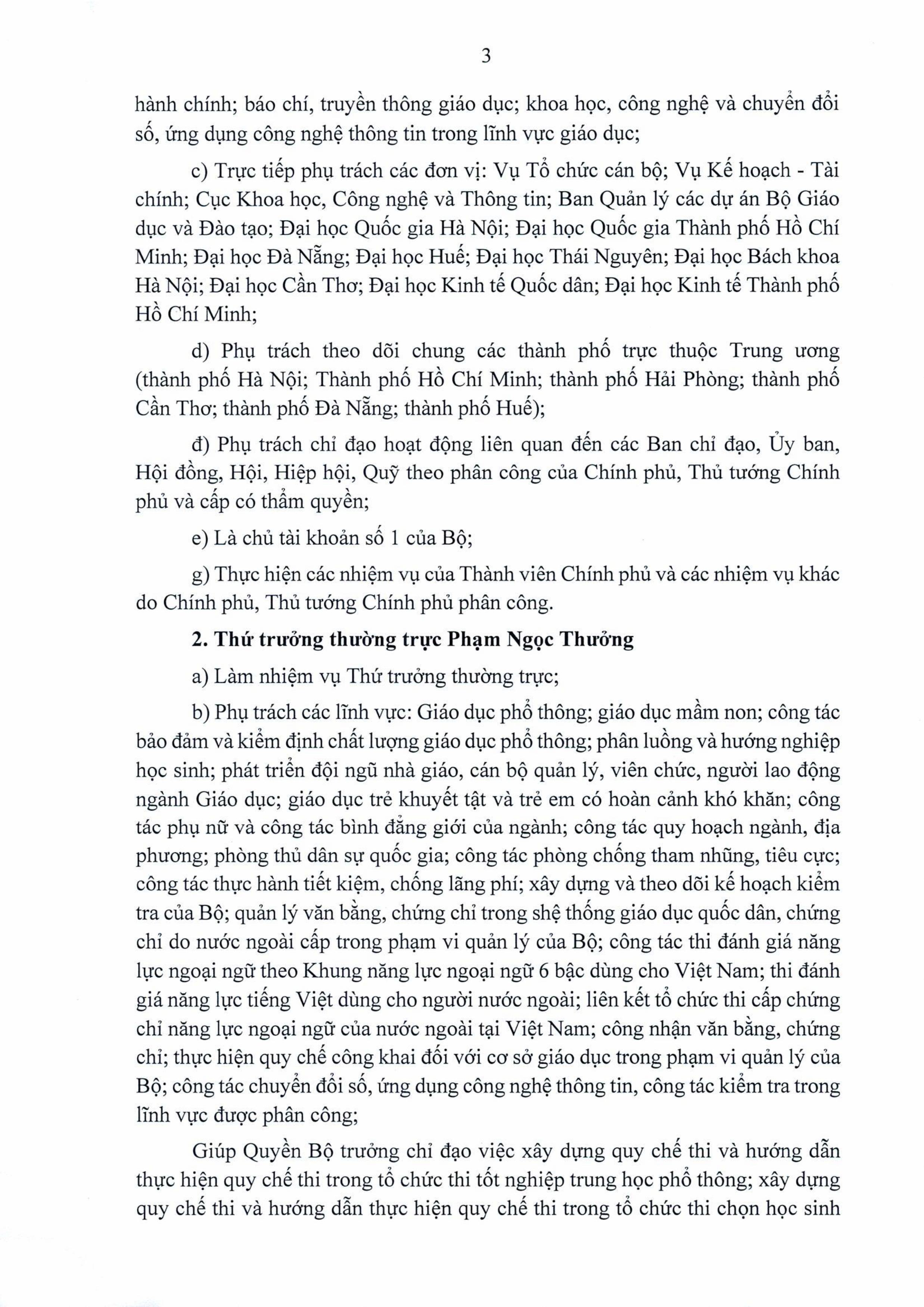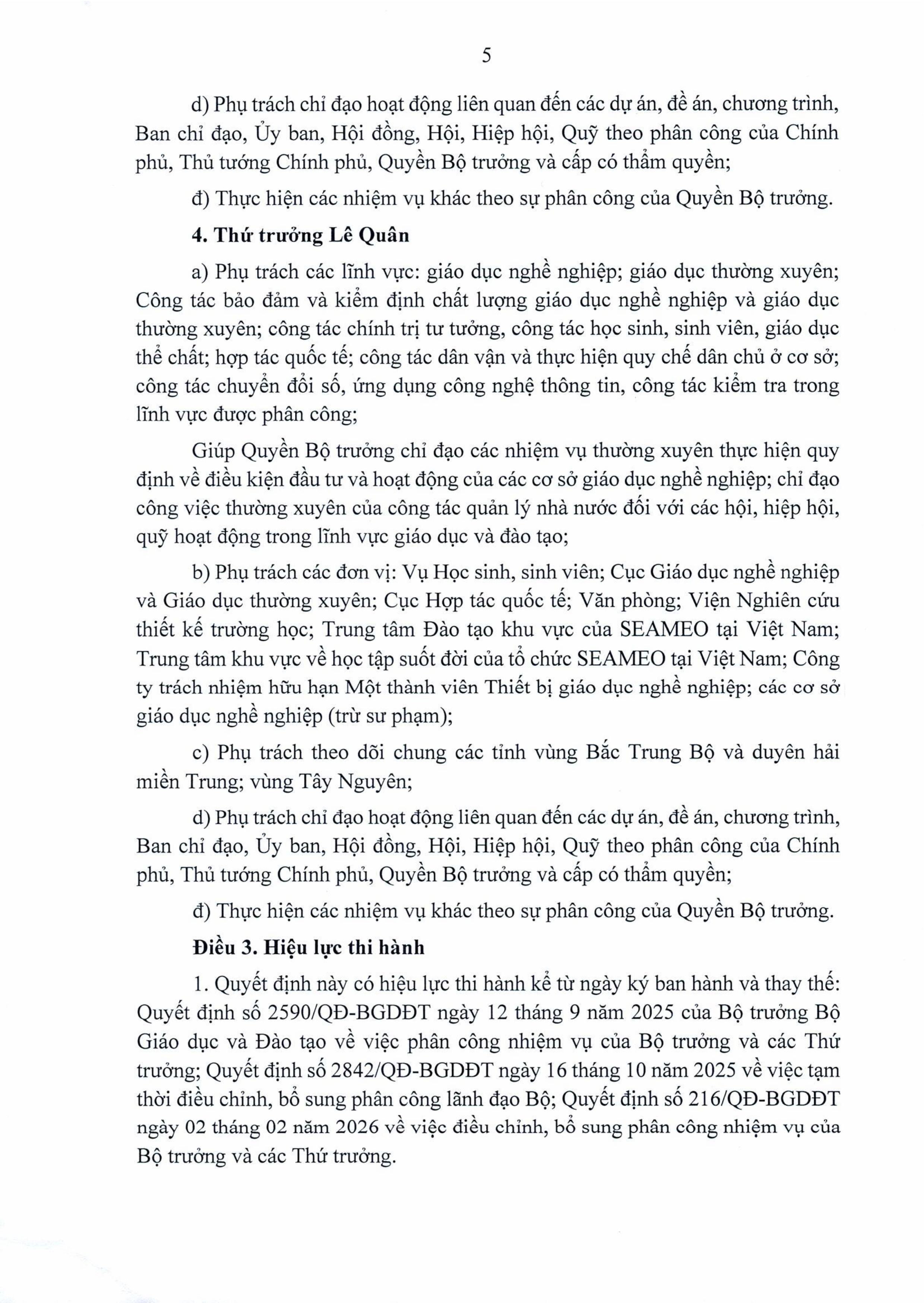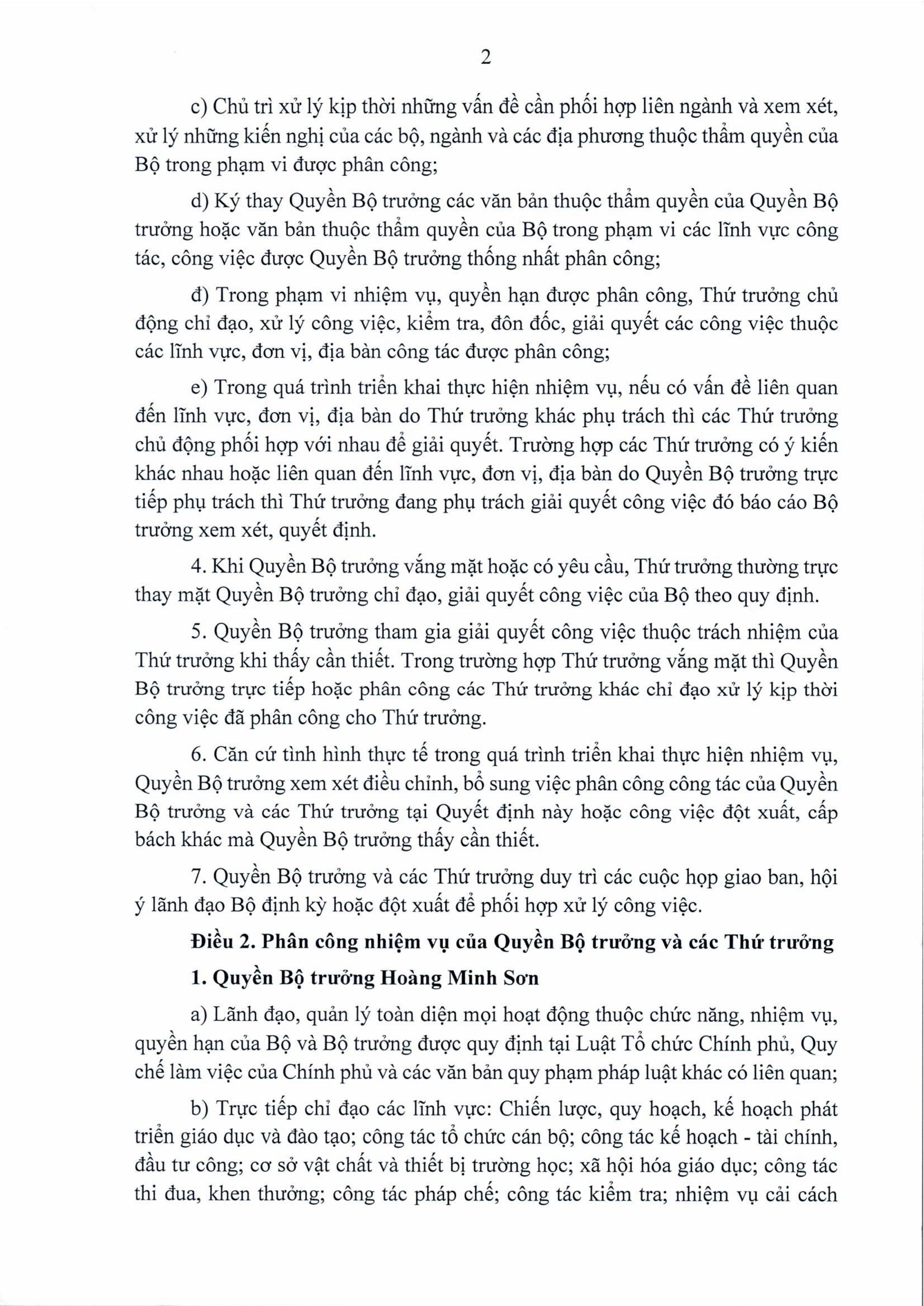 Quyết định Về việc phân công nhiệm vụ của Quyền Bộ trưởng và các Thứ trưởng