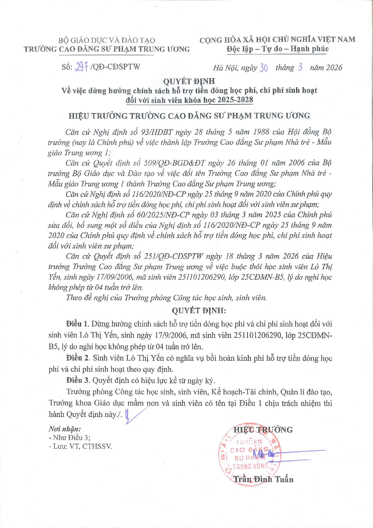 Số/ký hiệu: 297/QĐ-CĐSPTW