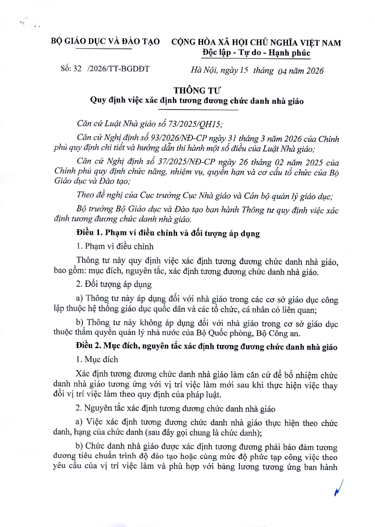 Số/ký hiệu: 32/2026/TT-BGDĐT