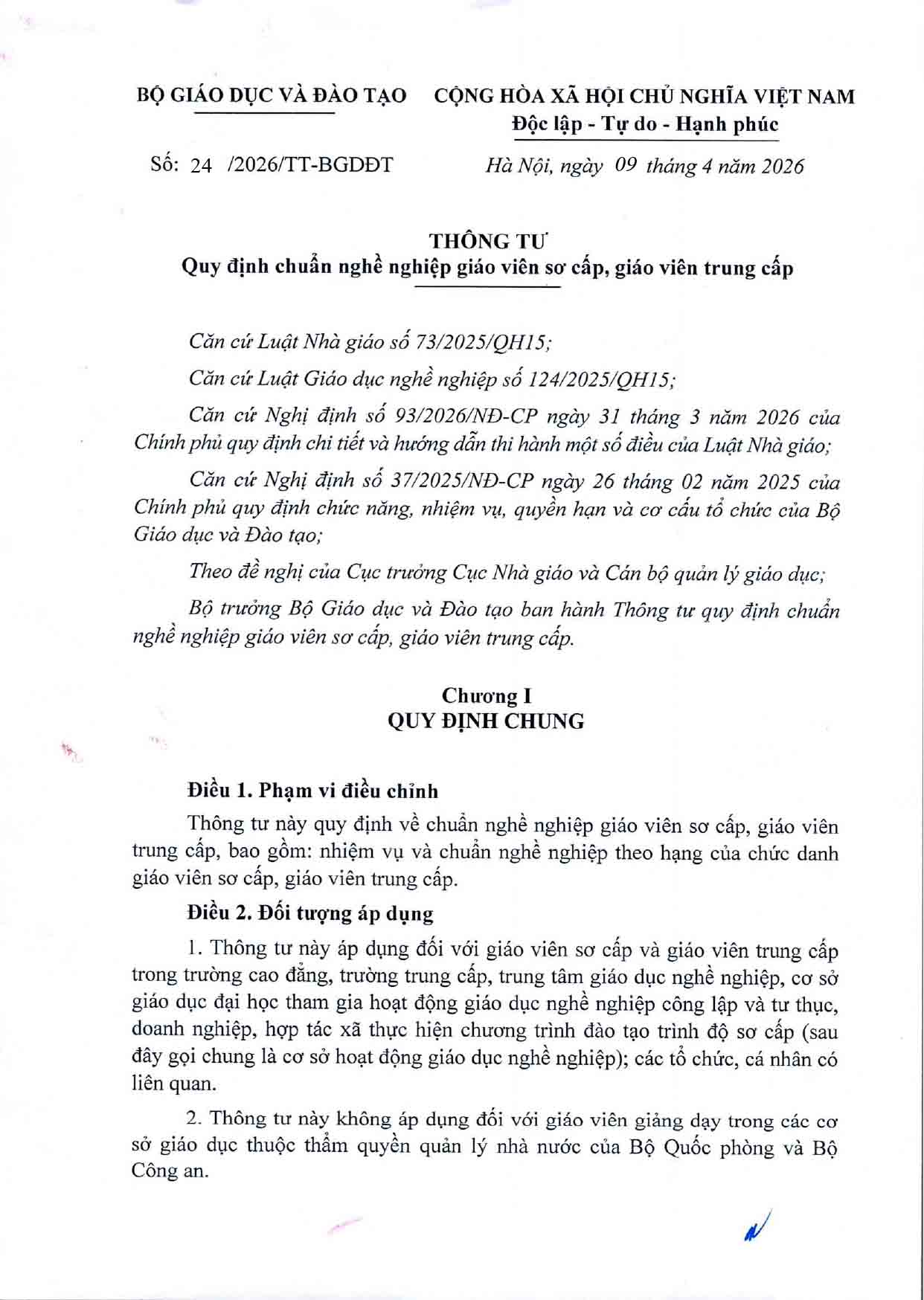 Số/ký hiệu: 24/2026/TT-BGDĐT