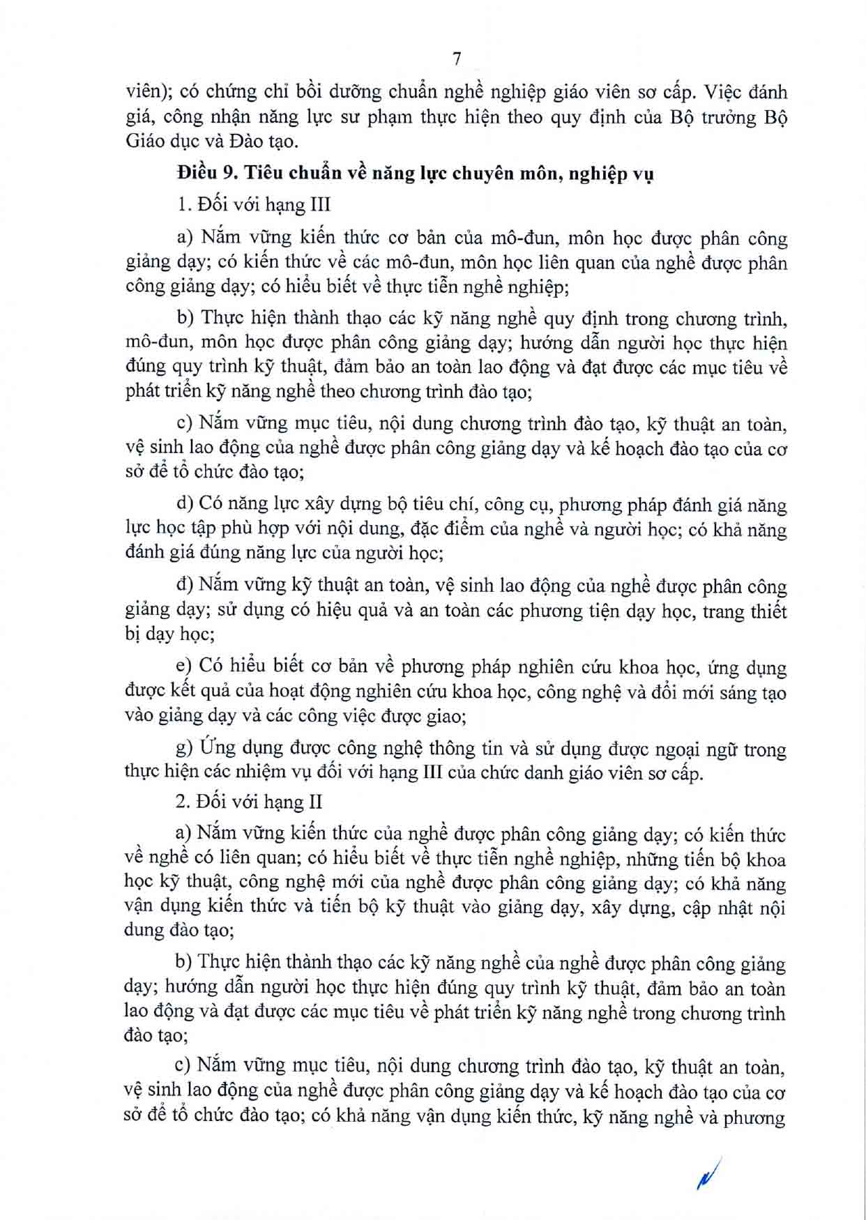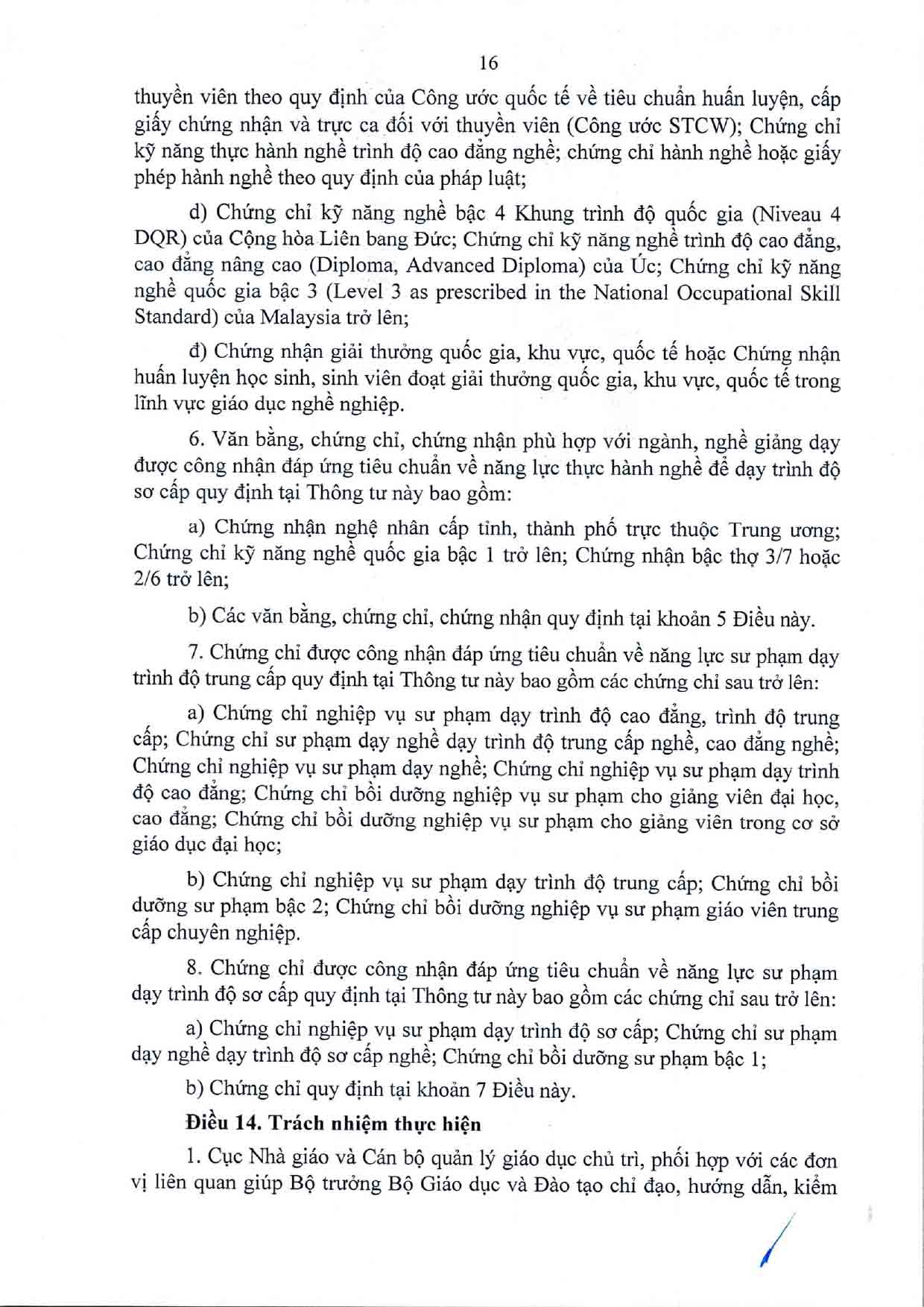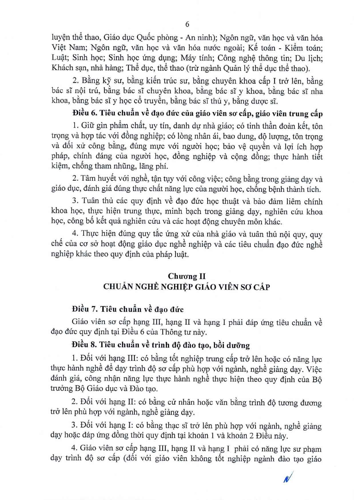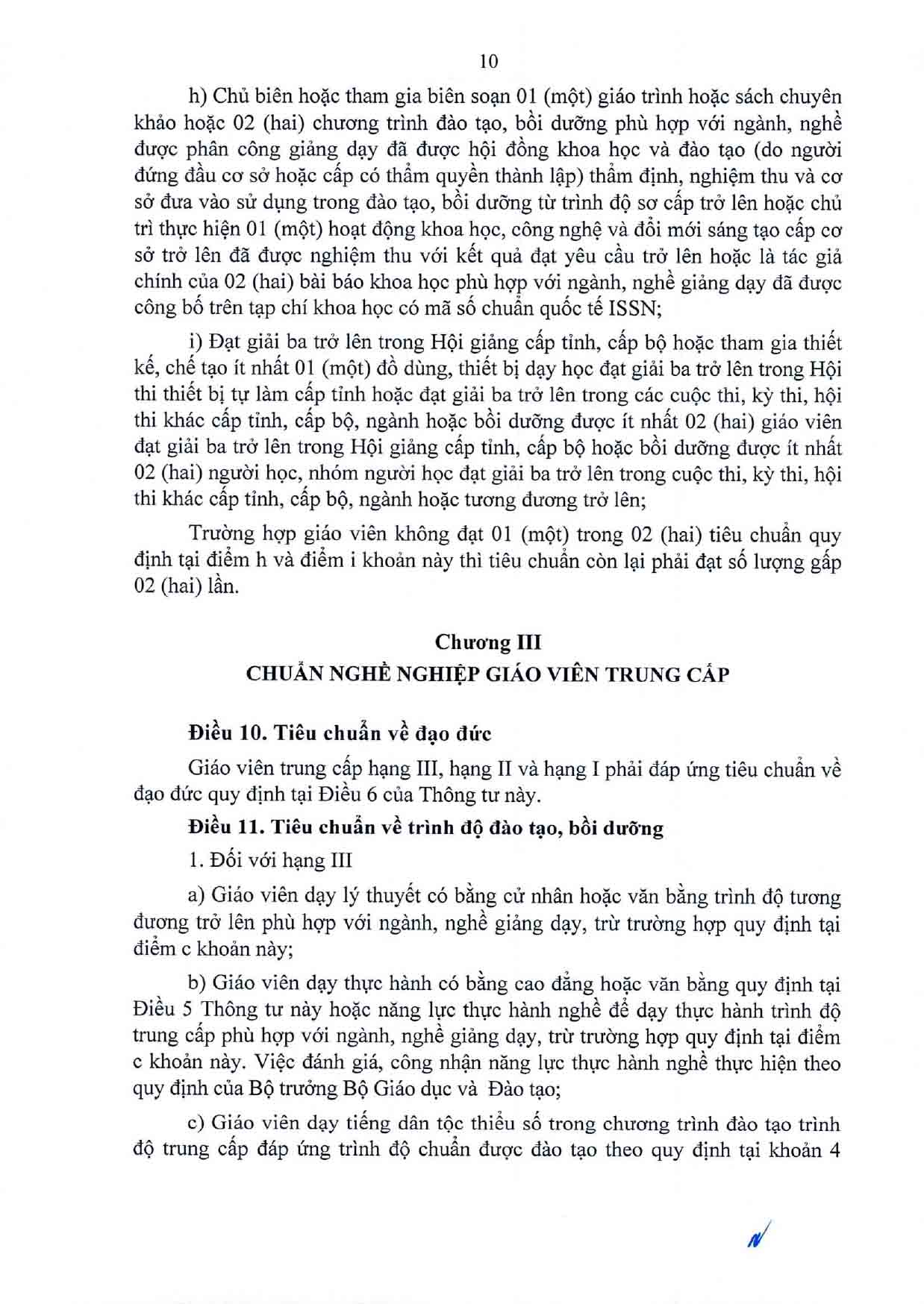 Thông tư Quy định chuẩn nghề nghiệp giáo viên sơ cấp, giáo viên trung cấp