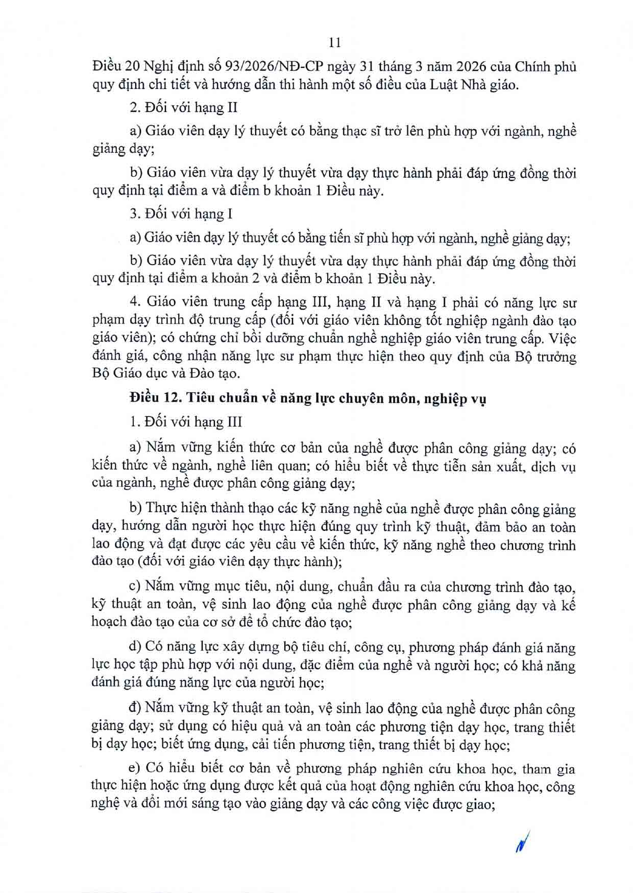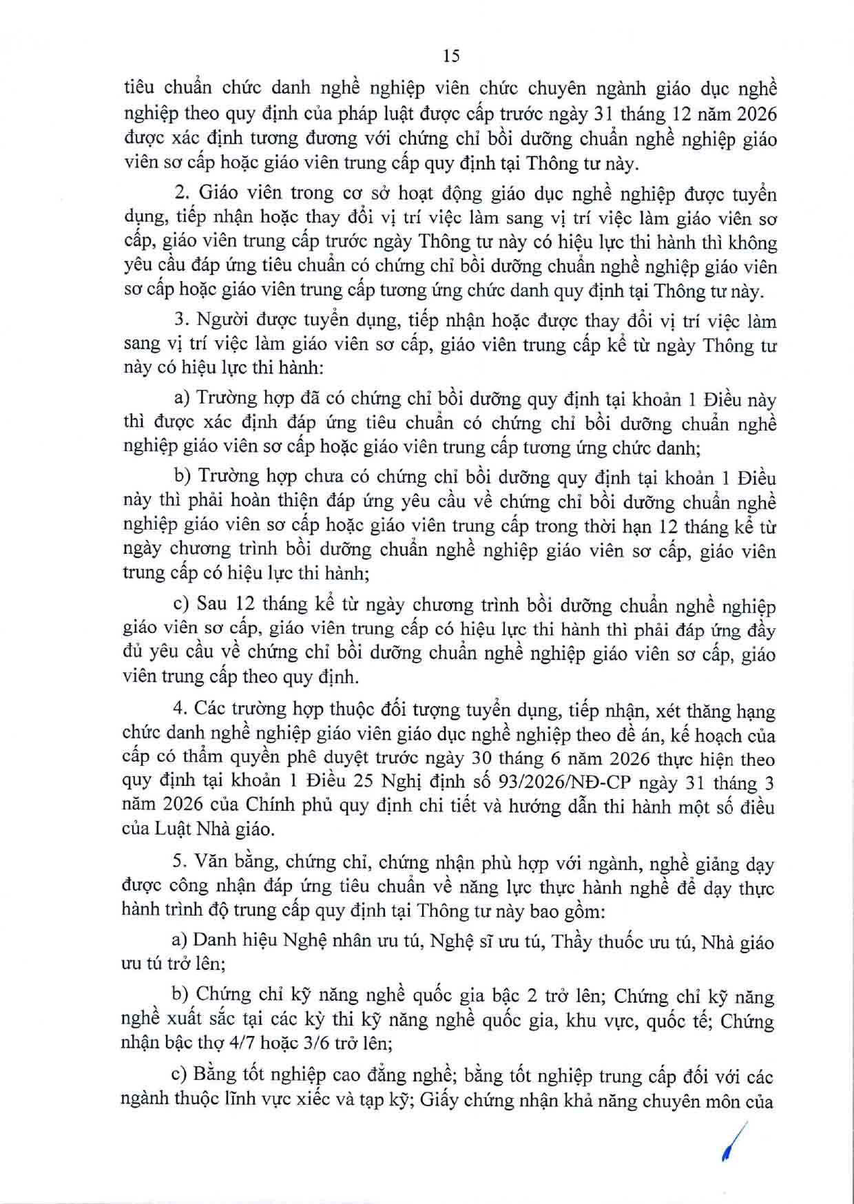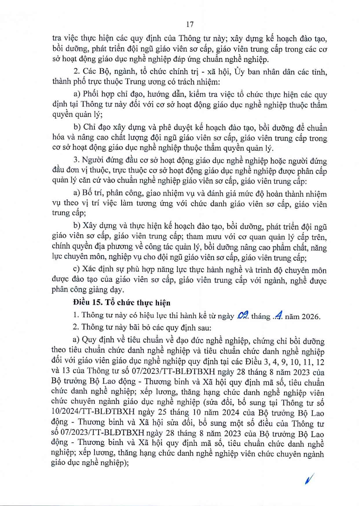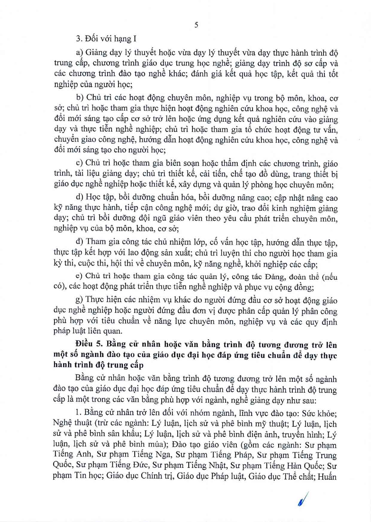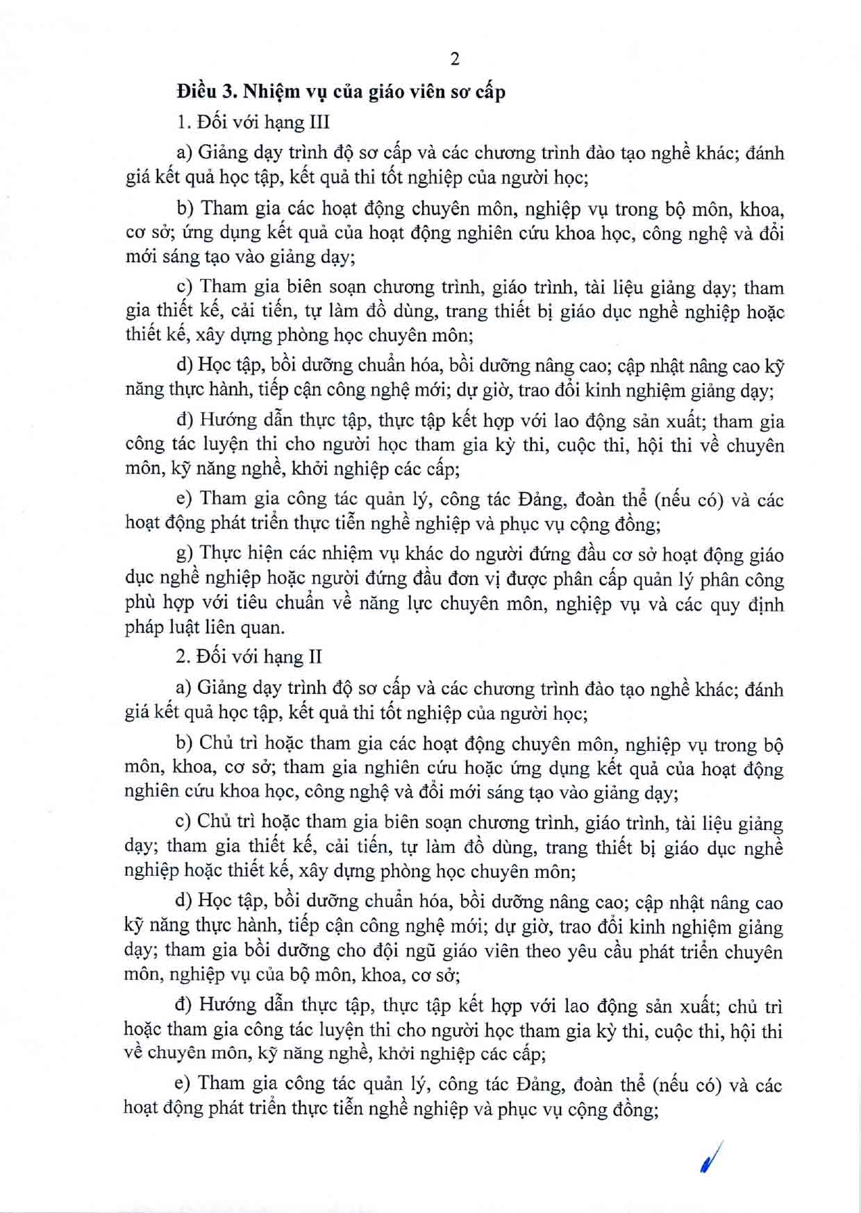 Thông tư Quy định chuẩn nghề nghiệp giáo viên sơ cấp, giáo viên trung cấp
