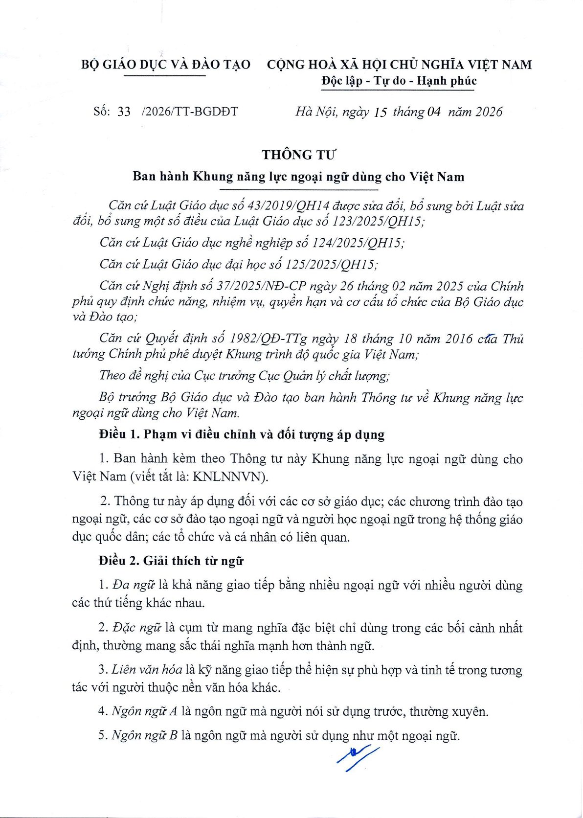 Số/ký hiệu: 33/2026/TT-BGDĐT
